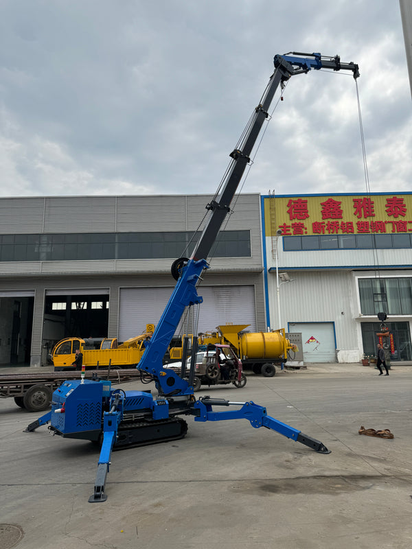 A Chinese factory that mainly produces material handling and lifting platform equipment, among which the Spider Crane is one of our very competitive products, which has been improved many times, evolving from the previous large lifting equipment to a mini crane that can work in narrow spaces, both indoors and outdoors. Named for their "spider-like legs", these machines are recognized by the market for their wide range of applications and adaptable solutions. They solve the problem of conventional lifting equipment or truck-mounted cranes not being able to work due to size constraints, and excel in both the engineering and construction fields. Especially with Kubota's engine, the Spider Crane has revolutionized both power and environmental protection.